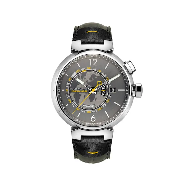 A função é fácil de usar, mesmo quando se torna necessário ajustar as definições, uma vez que um discreto corretor colocado no meio das quatro horas permite definir a horas nos fusos respetivos (por exemplo, quando os relógios avançam ou recuam). O novo Tambour Heures du Monde distingue-se ainda pelo elegante mostrador cinzento conta com um acabamento acetinado vertical que se consubstancia como um eco gráfico dos fusos horários. Belo atrás como à frente, uma vez que o fundo transparente do instrumento em aço com 44 mm de diâmetro revela um calibre automático LV 101 com uma massa oscilante que ostenta a assinatura LV gravada no metal. Apresentado com uma bracelete cinzenta em pele de jacaré com charneira em pele de vitelo, costuras amarelas e acabamento pespontado, este relógio tem uma caixa à prova de água a 50 metros. É um relógio intemporal para quem aprecia peças exclusivas.