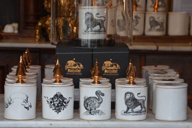 Assim é a Anhalter Apothecary Moderne que, para esta coleção, inspirada no leão da autoria do alemão Albrecht Dürer, entre outros símbolos da Alemanha renascentista transformados em ilustrações gráficas que ornamentam com detalhes dourados os embalagens cerâmicas inspiradas nos originais potes de farmácia e feitos à mão pelos artesãos do Kühn Keramik, o estúdio de Bernd Kühn, ceramista há cerca de 23 anos, formado na Baviera e em Paris, contou com a colaboração de James Heeley, designer e perfumista britânico radicado em Paris.