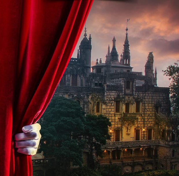 A Quinta da Regaleira constitui um dos mais surpreendentes e enigmáticos monumentos da Paisagem Cultural de Sintra. Situada no elegante percurso que liga o Palácio Nacional de Sintra e o Palácio de Seteais, a quinta foi adquirida em 1893 pelo filantropo António Carvalho Monteiro (1848-1920) para residência de Verão da sua família. Entre 1898 e 1913, sob o traço do arquitecto e cenógrafo italiano Luigi Manini, transformou os seus domínios numa ambiciosa obra de Arte Total, obedecendo a um complexo programa paisagístico, arquitectónico e artistico. Imagine tudo isto palco das peças de teatro atrás referidas… Perfeito.