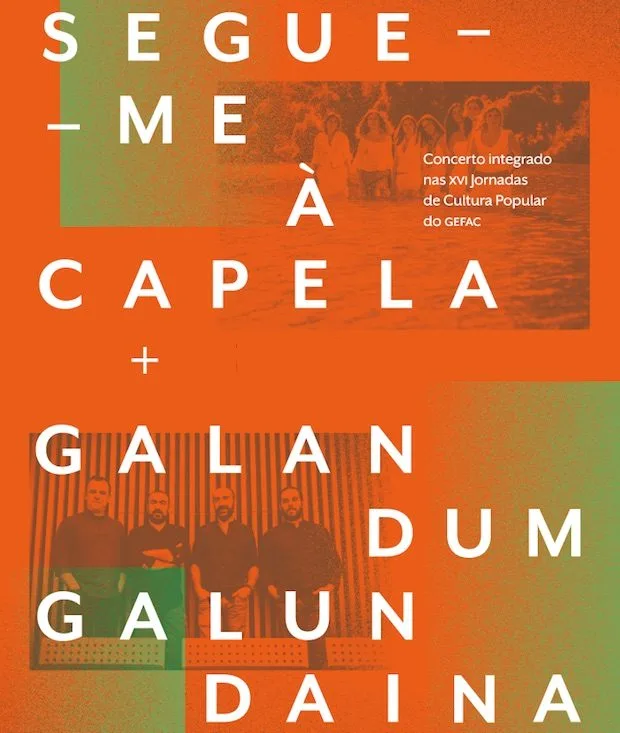Nas Segue-me à Capela temos Ananda Fernandes; Catarina Moura; Joana Dourado; Mila Bom; Guida Pinheiro; Maria João Pinheiro; Sílvia Franklin. Em Galandum Galundaina temos Paulo Preto; Paulo Meirinhos; Alexandre Meirinhos; João Pratas. Dia 10 de novembro, pelas 21h30 em Coimbra, no Grande Auditório do Conservatório de Música, é noite a não perder. •