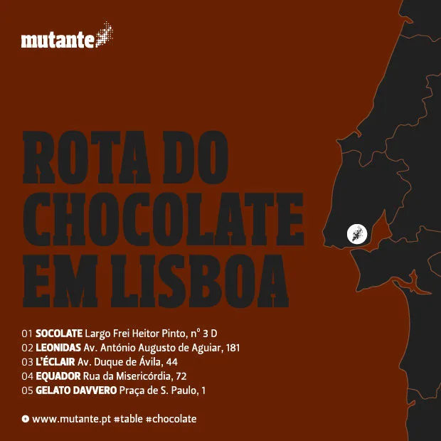 A pretexto do evento lisboeta dedicado a tão venerada substância alimentar, a decorrer entre 9 e 12 de Fevereiro, no Campo Pequeno, acompanhamos a Presidente do Cacau Clube de Portugal, Odete Estêvão, num roteiro guloso pela capital portuguesa com o intuito de dar a conhecer uma mão cheia de espaços diferentes.