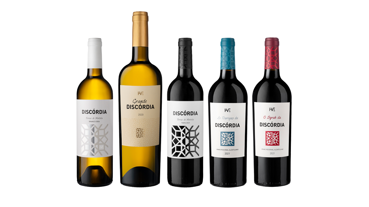 As primeiras vinhas, plantadas em 2010, incluem castas tintas (Touriga Nacional, Touriga Franca, Alicante Bouschet e Syrah) e brancas (Antão Vaz, Arinto e Verdelho). A plantação foi efetuada com uma orientação solar semelhante à encosta sul do Douro, o que ajuda a definir o estilo dos vinhos Discórdia.