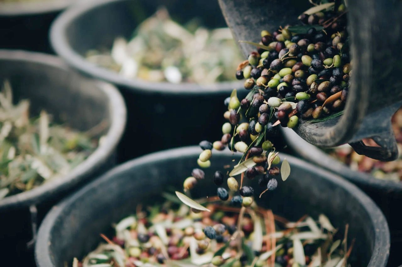 Ao longo da jornada de oito horas, que iniciam quando a terra sob os pés ainda está húmida, seja pela precipitação noturna ou graças ao orvalho matutino, cada trabalhador serve-se da sua força e resiliência para fustigar as árvores com varas de madeira ou fibra de carbono. As azeitonas rolam então pelas encostas abaixo, até repousarem sobre as enormes lonas verdes que cobrem o solo. Uma vez juntas, enchem os baldes que as levam ao lagar para extrair o azeite.