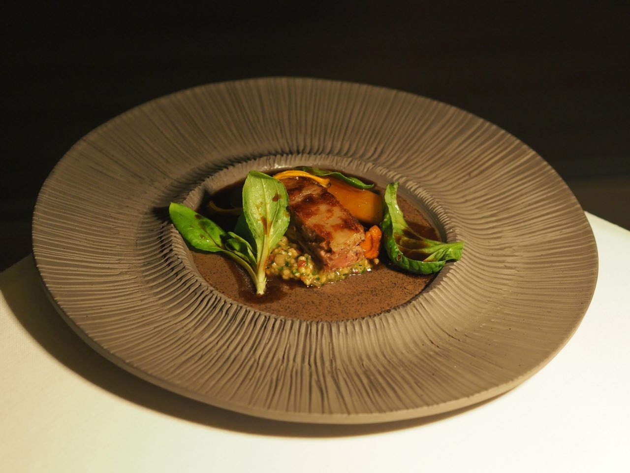 O bacalhau, que acabou de entrar na carta, que também é um prato de peixe inspirado num prato de carne, é uma grãozada de bacalhau, uma mão de vaca recriada com bacalhau. Apesar de não ser um peixe oriundo da nossa costa, culturalmente é muito importante para nós e está presente em casa de todas as famílias, pelo menos, uma vez por ano e de alguma forma, porque há 1001 formas de o fazer. Por isso, quisemos trazê-lo para o nosso menu e, até o afinarmos, foi um desafio entenderem o que eu queria a ao nível do picante, de textura. Temos o lombo, os sames, a língua, a pele, as caras e as espinhas do bacalhau, de onde extraímos o colagénio. Tudo é cozinhado de uma determinada forma. A pele é grelhada, estufada e colocada por cima. O sames fica crocante, como se fosse um torresmo. Depois há que fazer o molho, cozer o grão… Se formos analisar as confeções individuais do prato, percebe-se que tem complexidade, que tem alguma exigência de conhecimento.