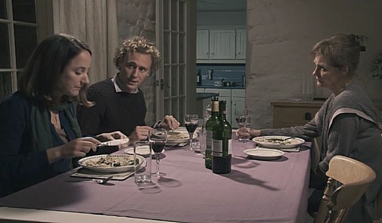 Ao escolher para plano de abertura do filme uma grande tela a ser pintada por uma mão sem rosto, julgo que Joanna Hogg estará a pedir-nos que nos preparemos desde logo para pintarmos também o nosso quadro/paisagem com o desenrolar do filme – de seguida, passamos para um plano geral e conseguimos ver o pintor (Christopher, um amigo da família) e toda a paisagem natural que está à sua frente e que vai até ao mar -, para tal, Hogg oferece-nos a lente da sua câmara como sendo o nosso próprio olhar, cabendo depois à nossa mente transformar-se na mão do pintor que, face à paisagem diante dos seus olhos, vai pintando a sua própria recriação. Exclusivamente em planos fixos, Hogg coloca-nos sempre a paisagem vista a partir do nosso olhar, seja ela exterior ou interior, com ou sem pessoas, tanto faz, é sempre num ângulo observacional nosso, de espectador, com a devida e salvaguardada distância, que as imagens se dão. Ou seja, os enquadramentos fazem de nós, espectadores, invariavelmente, testemunhas oculares e privilegiadas, sempre sob a nossa lente – como tal, cabe-nos a nós escolher o que e como vemos perante o espaço amplo, aberto; a câmara não nos guia forçando a mudança de plano ou movimentando-se no mesmo; o movimento, diga-se, cabe às próprias personagens e ao nosso olhar, mediante as nossas escolhas. Exemplificando, sempre que se dá a cena à mesa de jantar, dentro de casa, com a mãe Patricia (Kate Fahy), a filha Cynthia (Lydia Leonard) e o filho Edward (Tom Hiddleston, que já víramos em Unrelated), a câmara é colocada numa ponta que permite enquadrar os três rostos e ainda ver, com a profundidade de campo devida, a cozinha de porta aberta, onde amiudadas vezes surge Rose (Amy Lloyd), a empregada doméstica contratada para aquelas férias – enquanto decorrem os jantares vamo-nos desdobrando entre o que vemos à mesa e o que espreitamos na cozinha, além do que ouvimos. E como, gradualmente, rapaz e empregada vão estreitando proximidade e química, um pouco à semelhança do que vimos entre Anna (Kathryn Worth) e Oakley (o mesmo Tom Hiddleston) em Unrelated, maior relevância ganha ainda a profundidade de campo que nos leva da mesa de jantar até à cozinha.