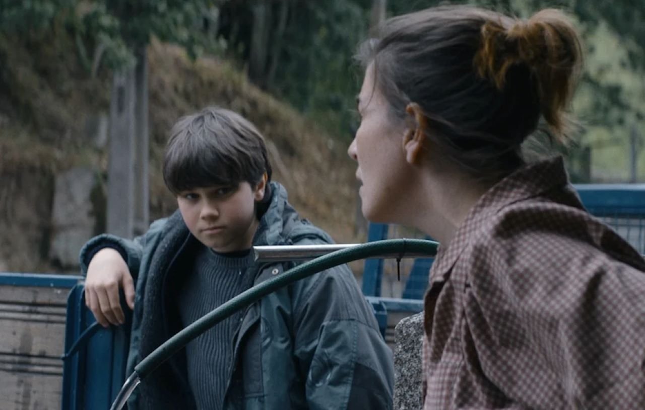 Quando a dado momento do filme o pai António (Rúben Gomes) vai à sala de aula do orgulhoso filho, João (William Cesnek), para falar do impacto das alterações climáticas no seu trabalho enquanto pescador, a lampreia esguia que ele leva e que lhe escorrega pelas mãos, para susto de professora e alunos, diria que serve como boa metáfora para os movimentos e guinadas do filme: entre a tragédia e a reconstrução. De barba negra, cerrada e farfalhuda, António corporiza o arrastar traumático de quem vive dia a dia naquele fatídico rio. A sua figura funde-se harmoniosamente com aquela atmosfera sombria, tenebrosa, que se estende do rio para a terra, para a comunidade, encontrando correspondência num céu cinzento, macambúzio, que acicata a melancolia e que vai derramando tristes lágrimas pela chuva. Abandonado pela mulher – ficamos a saber já no decorrer do filme -, António afoga mágoas no álcool, dia e noite, e vai resistindo à tragédia da vida com o filho, adolescente, com quem vive, numa casa que ainda consegue ser mais escura do que a já descrita atmosfera exterior que vai pairando por quase todo o filme. A casa é exígua e macabra e dela exala a violência e a dor que o filme nos faz saber, sem nos mostrar. Faz parte da tragédia de António, que desagua no filho João, cujas marcas no rosto não chegamos a ver – o tempo do filme é de reconstrução, mesmo que se continue a escorregar para a tragédia. Vi muito em ‘Terra Vil’ um aproximar ao cinema de João Canijo, sobretudo quando o filme se inclina mais para a tragédia, do qual também vi a afastar-se sempre que se dá a guinada para a reconstrução. Há uns laivos de ferocidade humana vertidos em António que remetem para o universo de Canijo, aos quais se juntam toda aquela tenebrosa atmosfera que correlaciona indivíduo e sociedade, uma casa e uma terra, uma família e um povo – um realismo social que parte de uma realidade particular para assim reverberar o geral, o meio onde se vive -, com os rituais católicos também presentes: missas, vigílias, procissões, rezas, são bem apanágio dos filmes de Canijo.