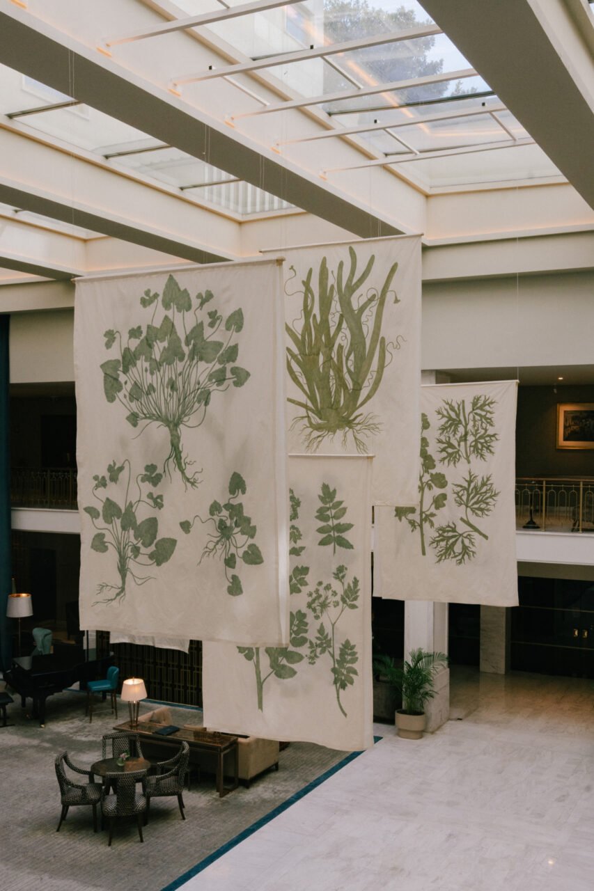 Coube a Weronika Anna Rosa, artista visual botânica de origem polaca, “trazer a natureza para o meio da cidade” através de “Awakening”, título atribuído à instalação suspensa, até 31 de agosto, no lobby e átrio do Tivoli Avenida Liberdade, em Lisboa. A intenção? “Queria criar um momento de paragem” no contexto cosmopolita da capital portuguesa, através de peças contemplativas com plantas inspiradas nos herbários históricos, em investigações de campo e nos dados da Lista Vermelha de Espécies Ameaçadas. Todas foram desenhadas e pintadas poética e manualmente em tecido de algodão orgânico português, com diferentes tramas e graus de transparência. São peças únicas e preenchidas a aguarela, com uma “paleta suave e delicada, como se fossem fósseis”, acrescenta a autora.